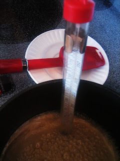So...my friend Gena had a candy thermometer at her house. Our friend J was there too. Now mind you she doesn't cook...much. Not without a can of cream of mushroom soup in the house anyway. So...she asked, "Is that like a rectal thermometer?" No, my dear friends, it is nothing like a rectal thermometer. Yikes. Which would be wrong on sooooo many levels to have that in the kitchen. So wrong. Sick and wrong. Behold the candy thermometer. It's the one with the clip on it to hold it to the pan...
