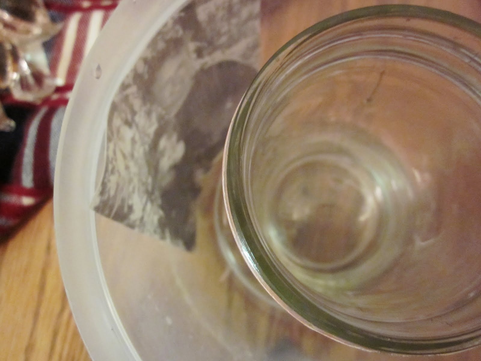 Here's an odd thing (don't look at me like that...I'm perfectly normal). Once the ice is frozen, the glass usually slips right out. Strange but true. I didn't even have to use my giant girlie-baker muscles to dislodge this bad-boy jar. Be impressed. Please. Please?