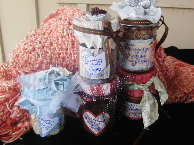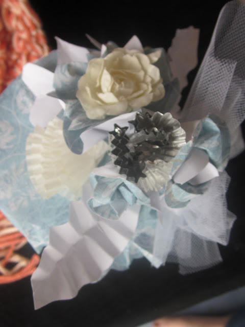 I embellished the top of this jar with paper flowers, and rolled up silver cupcake liners. So cute!