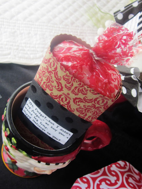 I think it's cute putting some prepared fudge in a wrap of scrapbook paper and a cute tag. Very simple and personal.