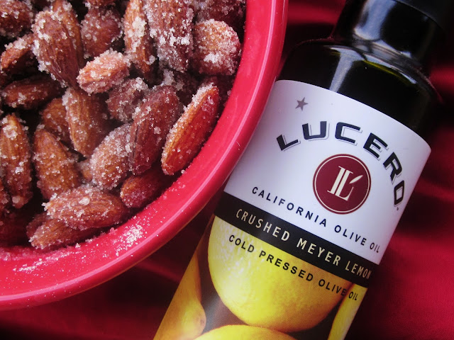 I also have to give a giant thanks to the folks at Lucero Olive Oil for the Crushed Meyer Lemon and Chocolate infused Olive oil. Both are amazing for nuts!