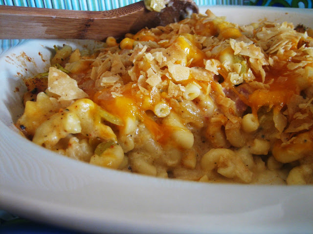 As for today...this is a cheesy post. I'm just Oozin' with it. Actually...I should never really use the word "oozin'" when I'm talking about food right? Is oozin' a word? If it is then it is a word that should only be reserved for medical journals. No. I think it applies to food. I think cheese can be (and should be) oozin'...but in a totally delectable non-weird Patch Adams kind-of-way. For instance, in a proper mess of Green Chile-Bacon Baked Macaroni and Cheese when it is in its golden perfection straight from the oven with a crisp crunching topping and the cheese is melty and gooey and divine with smoky nibbles of bacon and chunks of spicy green chilies...there is certainly some remarkable, life-changing oozing going on. Am I right?