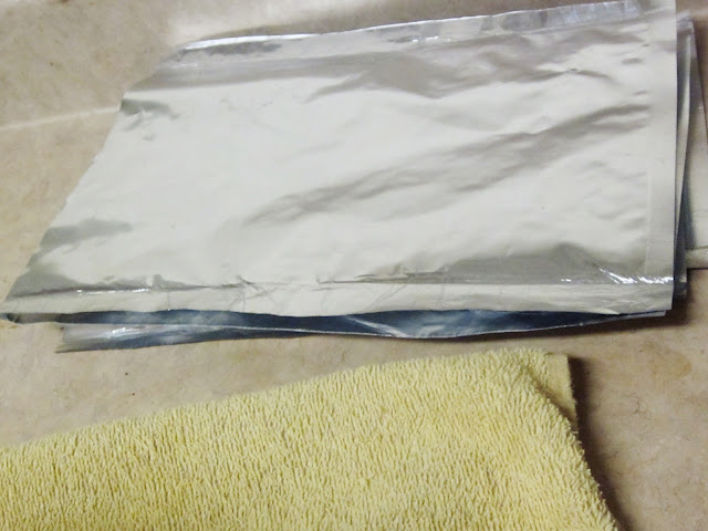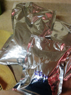 Sure enough, I took pictures of how to pack the mylar meals. You know, so that you'd benefit from my adventure as well. I know you love me. Try not to cry. 1. First you will need some Mylar bags. For more information on how they are made and designed, go here. The outside is aluminum and the inside is lined with a food-grade plastic. Ironically when it is ironed with heat on the outside of the bag, the plastic fuses together causing a magnificent seal! I use and recommend the 5.0 mil FOOD GRADE bagsThey come in various sizes, but so far my favorite has been the 5 gallon size. They are available at all the Honeyville Farms retail locations. Find your local store.