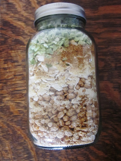 in a jar recipes and suggest some more natural "clean label" alternatives for making them at home. I think this is always a good idea! As always, you can use the organic versions of these ingredients. If you use dehydrated vegetables, they will take more liquid to hydrate and take longer to cook depending on the size of the pieces. If you dry your own veggies, use a small dice and dehydrate them on a mesh. Make sure they are "brittle" dried. It will take a lot less of the dehydrated ingredients, and a lot more liquid. Keep that in mind. On the dehydrated vegetables, you will have to calculate the water for your own recipes. I can't control how thick your items are cut, therefore, I cannot offer an accurate liquid amount. If you are just adding your own fresh cooked beef or meats to the meals at the time you prepare the meals, and want to omit the freeze-dried version, you will need to decrease the water in the cooking directions by about 1/2 cup. These also use a lot less of the freeze-dried meats. You can use the vegetable TVP in its place or, as always, use freeze-dried zucchini or additional vegetables in its place.