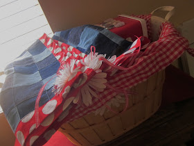 I will be bringing a few of my newest creations. These are lemon curd strawberry butter bars. They will travel in the cookie tin for fun. Of course, I could totally share that recipe here...but it will have to be later. I really had fun with the tablecloth! It just screams kids and baseball. It's like apple pie and hot dogs right? It took hours on end to piece together all those jean squares too. You'll never be able to be as cool as me. Okay...brace yourself. It's actually pretty simple.